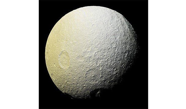 14. Спутник Сатурна Мимас похож на Звезду Смерти, а изображение колебаний температуры на его поверхности напоминает Пакмена.