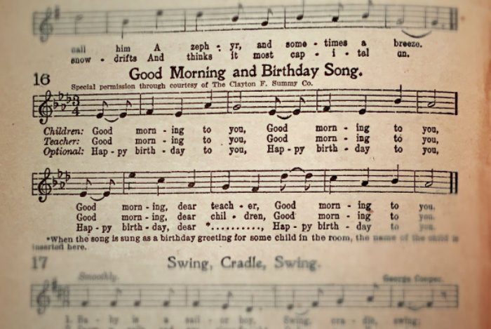 Песня *Happy Birthday to You!* исполняется на тот же мотив, что и *Good morning*