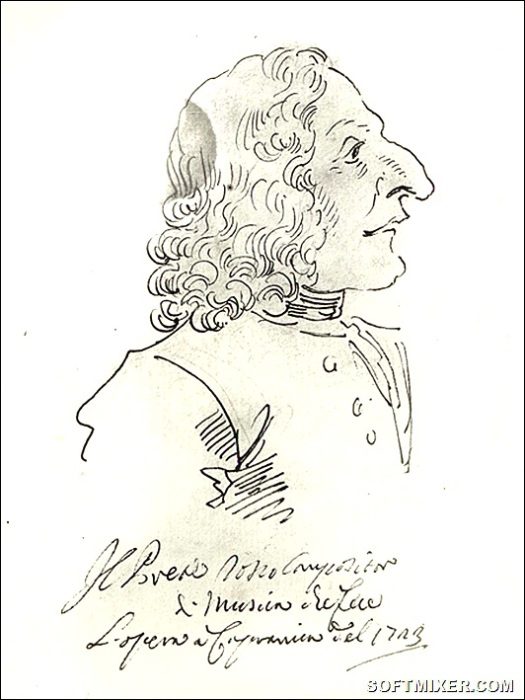 Карикатура на Вивальди — «Рыжий священник». Пьер Леоне Гецци, 1723 год.