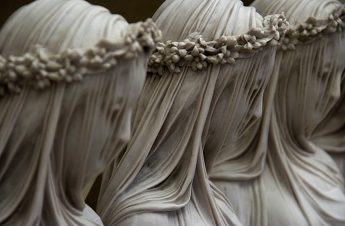 Когда Рафаэль Монти задумывал «Мраморную вуаль», он долго искал нужный камень. Дело в том, что скульптору необходима была двухслойная глыба. Монти мастерски работал, снимая слои. Более плотная текстура камня – это основа для скульптуры, а тонкий верхний слой стал вуалью. Выглядит невероятно реалистично, создается впечатление, что каменная вуаль вот-вот заколышется от легкого дуновения ветерка.