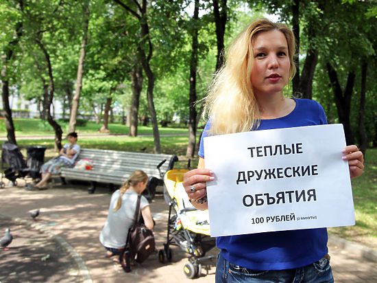 И я тоже решила отправиться в реал. Распечатав табличку «Теплые, дружеские объятия. 100 рублей 2 минуты», отправилась в Краснопресненский парк.