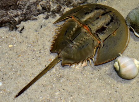 Эти водные членистоногие — невероятным образом сохранились до наших дней. Их появление относят к глубокой древности: около 440 миллионов лет тому назад. Сегодня они живут на мелководьях теплых морей Азии и Америки… У мечехвостов 4 глаза, они плавают кверху брюшком и «пережевывают» пищу конечностями!