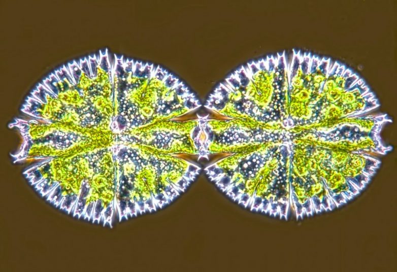 Деление клетки десмидиевых водорослей (Micrasterias apiculata).