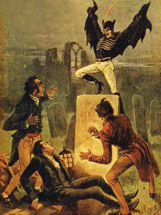 Самой жуткой страшилкой викторианской Англии был огнедышащий дьявол, который неестественно высоко прыгал и нападал на прохожих. Одни говорили, что это демон, а другие считали, что это просто необычайно подвижный человек «с пружинками на пятках». В любом случае, Джек-прыгун (Spring-Heeled Jack) был городской легендой, воплотившейся в ночные страхи британцев, а его похождения нашли отражения в комиксах, сделавших его безумно знаменитым.