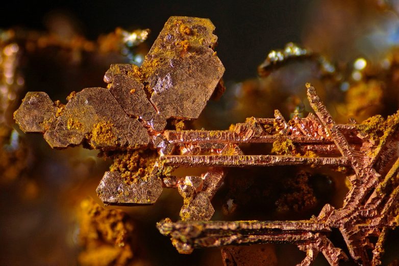 Кристаллы меди. 5-кратное увеличение.