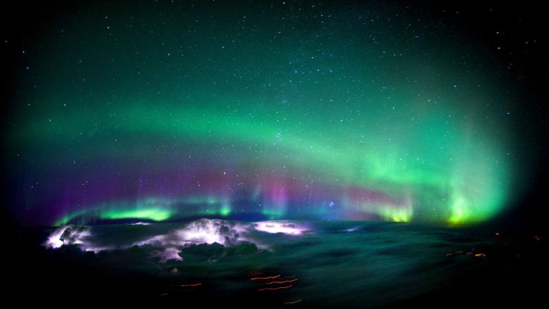 5. Северное сияние и облака, освещенные изнутри молниями.