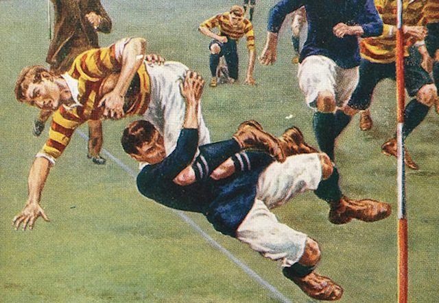 В реальности игра действительно возникла в школе города Рагби, и этому способствовал директор школы Томас Арнольд (Thomas Arnold). Правила впервые были написаны в 1845 году, и, считается, что игра выросла из футбола, но остаётся неясным, кто был первым человеком, взявшим мяч в руки и побежавшим вместе с ним.