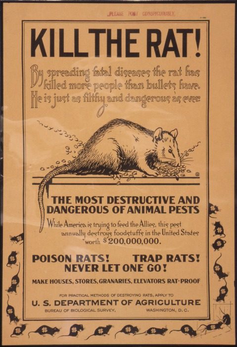 Плакат министерства сельского хозяйства США с призывом уничтожать крыс. 1910-е годы.