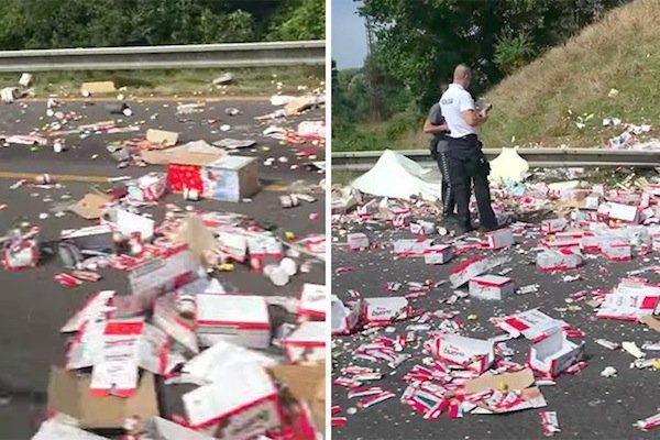Почти на полмили «Киндер-сюрпризы», «Киндер-Буэно» и «Нутеллы», а также другие вкусные угощения были разбросаны по трём автострадам в неустановленной европейской стране.