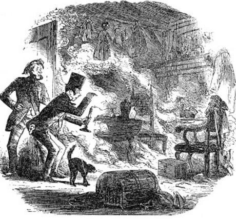 Иллюстрация к роману «Холодный дом» Чарльза Диккенса, изображающая сцену самовозгорание человека