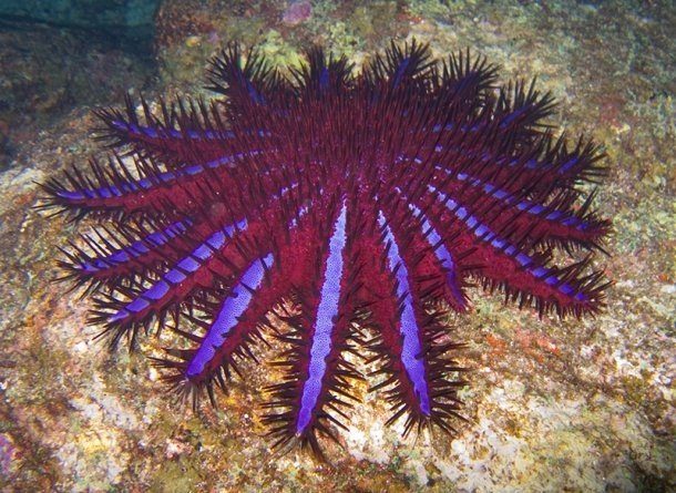 16. Большому Барьерному рифу угрожает морская звезда терновый венец, или акантастер. Эта крупная морская звезда с многочисленными острыми иглами питается полипами рифообразующих кораллов. Природные хищники тернового венца часто подвергаются чрезмерному промыслу, что ведёт к неконтролируемому и быстрому росту популяции этой морской звезды.