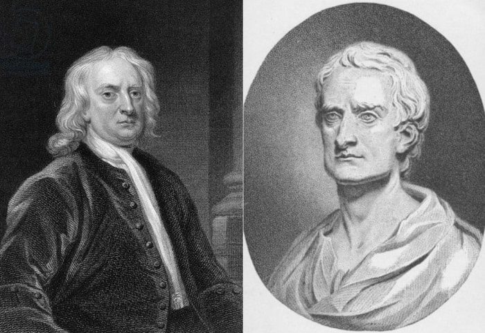 Слева – Е. Симен-младший. Исаак Ньютон, 1726. Справа – Г. Кнеллер. Портрет сэра Исаака Ньютона, 1702