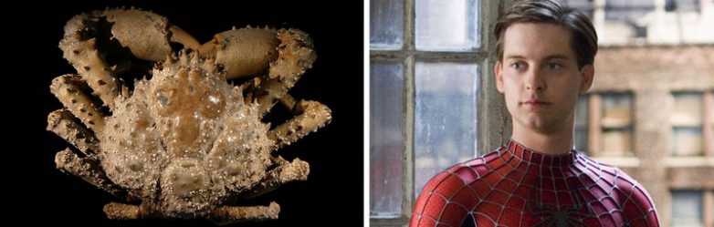 Краб-паук и Человек-паук. Колючий краб-паук, обнаруженный в Южной Флориде, был назван в честь актера Тоби Магуайра, сыгравшего главную роль в трилогии «Человек-паук». Говорят, что мясо этого краба очень вкусное, но он использует свое «паучье чутье», чтобы избегать промышленного отлова.
