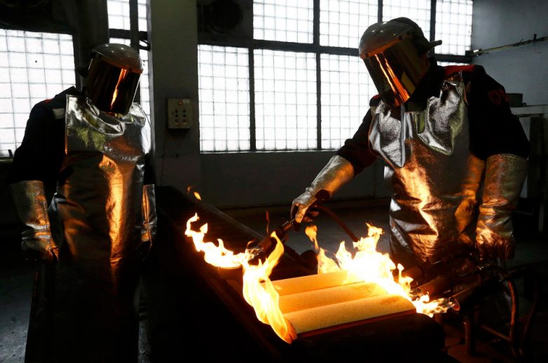 Изготовление золотых слитков, Приокский завод цветных металлов, 14 февраля 2017.