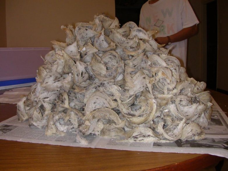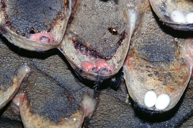 В третий раз получаются гнёзда красно-бурые. Если срезать абсолютно все гнёзда, то через несколько лет в этой местности стрижей совсем не останется. Саланганы никогда не пользуются два раза одним и тем же гнездом, а для каждой новой кладки яиц строят новые.