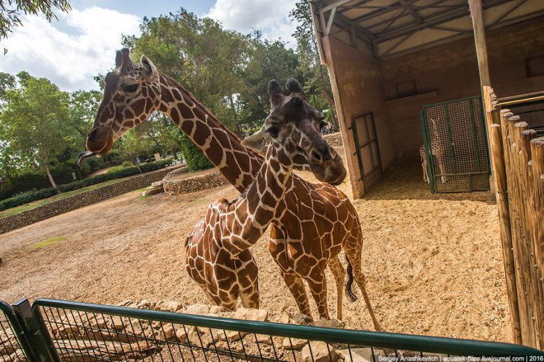 Возраст жирафа можно определить по цвету пятен на шкуре — чем они темнее, тем старше особь. Рисунок на шкуре жирафа уникален, как отпечатки пальца у людей. В общем, жираф сам в шоке от того, насколько он … своеобразный)
