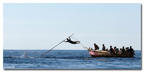 Если одна лодка тонет, рыбаки плывут к другой, ближайшей. Однажды кит разбил две лодки, а третью протащил за собой в Тимор — а это уже другая страна. В конце концов, многие китобои кинулись в воду и стали бить кита своими ножами прямо в море, что вдвойне опасно, если учесть, что кровь раненого животного привлекает акул.