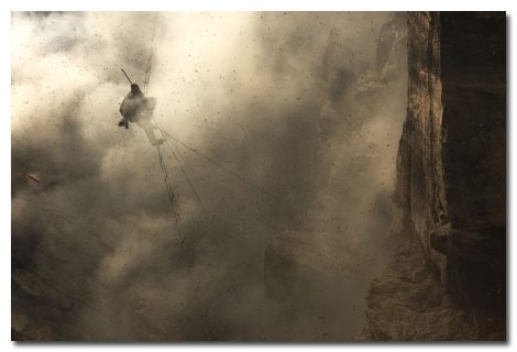 Оказывается, рисковать жизнью только ради того, чтобы полакомиться мёдом, способен не только Винни Пух. Жители одной из отдалённых деревушек Непала регулярно спускаются на верёвках с высоких отвесных скал, где местные пчёлы любят устраивать себе улья. Риск, которому они подвергаются, невозможно преувеличить, и все собиратели мёда это прекрасно осознают. Об этом свидетельствует тот факт, что многие скалы носят имена сорвавшихся с них любителей сладкого золота.