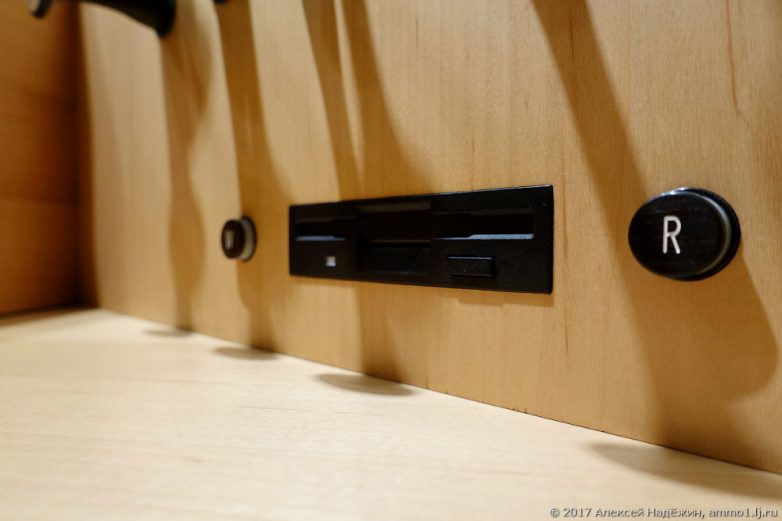 Пресеты сохраняются на обычной 1.44″ дискете. Конечно, в компьютерной технике дисководы уже почти не используются, но тут он исправно работает.