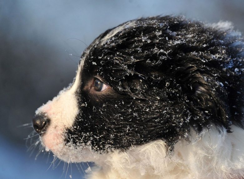Щенок бордер-колли семи недель от роду после игры в заснеженном саду в деревне в Словакии, 16 декабря 2010 года.