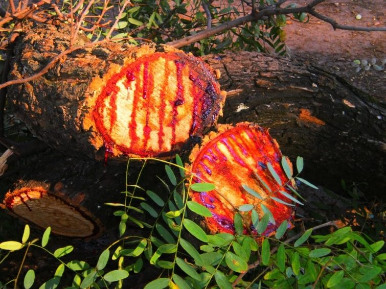 Красный сок этого дерева используется для изготовления красителя, а также для изготовления средств для лица и тела, путем смешивания его с животным жиром