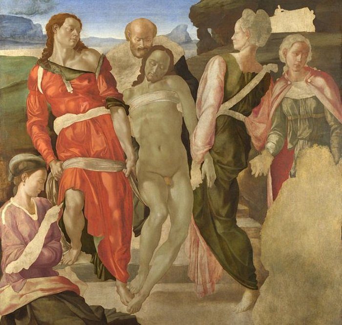 «Погребение» – незаконченная картина с изображением тела Иисуса, которое заносят в гробницу после распятия. История картины покрыта тайной. На ней нет подписи Микеланджело, на картине не хватает нескольких фигур, а само полотно было утеряно в течение многих столетий. Где находилось «Погребение», было неизвестно до 1846 года, когда шотландский фотограф и художник Роберт Макферсон решил пересмотреть много картин, купленных им по £ 1, и решить, что выбросить, а что оставить. К своему изумлению, он узнал в одной из картин кисть Микеланджело.