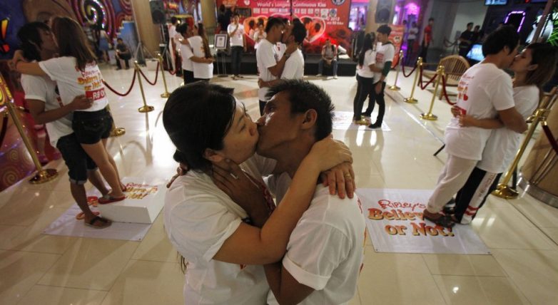 В известном на весь мир своими причудами городе Паттайя четыре года назад местный сотрудник службы безопасности Эккахай Тиранарат целовался со своей женой Лаксаной в течение 58 часов, 35 минут и 58 секунд. Такая точность измерений обусловлена тем, что этот акт был не слишком интимным: он состоялся в рамках конкурса по установлению мирового рекорда. В итоге предыдущее достижение любовники превзошли на восемь с лишним часов.