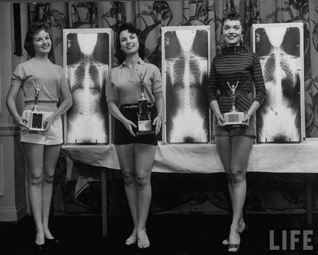 Победительницы конкурса «Мисс идеальная осанка», который проходил на съезде костоправов, 1956 год.