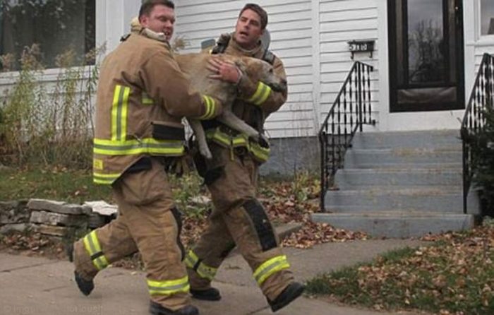 Доставив собаку в безопасное место, пожарным пришлось сделать ей искусственное дыхание, чтобы вернуть животное к жизни.