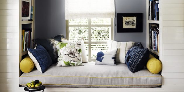 Для создания такого места идеально подходит широкий подоконник, куда можно положить много мягких подушек и пледов. Здесь можно пить вкусный чай по вечерам, наблюдать за падающими снежинками, читать книгу.