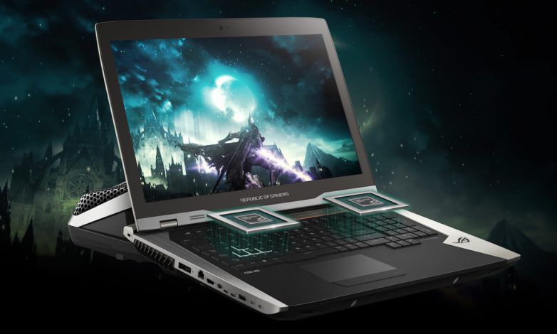 Теперь перейдём к этому монстру – игровому ноутбуку Asus ROG GX800. Приспособление за ноутбуком – система охлаждения, которая просто невероятна. Она охлаждает компоненты внутри ноутбука, если вы играете слишком много. В принципе, его можно использовать и как обычный ноутбук без дополнительной охлаждающей станции, но в таком случае его видеокарты (их две) не работают на полную мощность, потому что легко могут перегреться.