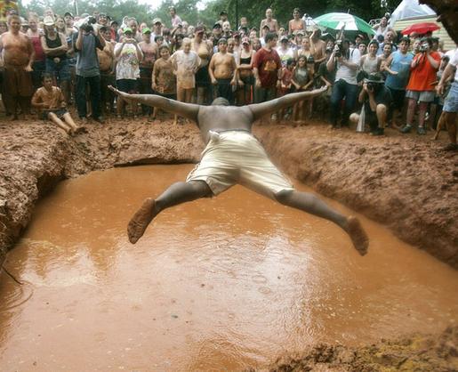 Этот вид спорта не имеет ничего общего с настольными играми – вместо этого летние игры деревенщины в Восточном Дублине, штат Джорджия, предлагают вам такие спортивные состязания, как: метание сидений унитаза, плевки семечками или художественное падение животом в яму с грязью.