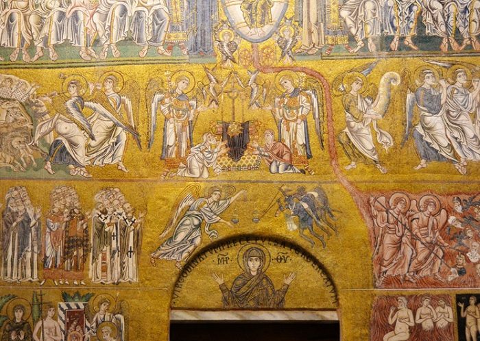Для христианской иконографии эту символику позаимствовали у древних египтян. Мозаика на кафедральном соборе острова Торчелло, датируемая 639 г. н. э., тому подтверждение. На ней изображена процедура взвешивания души, во время которой черти длинными шестами пытаются перевесить чашу весов в свою сторону.