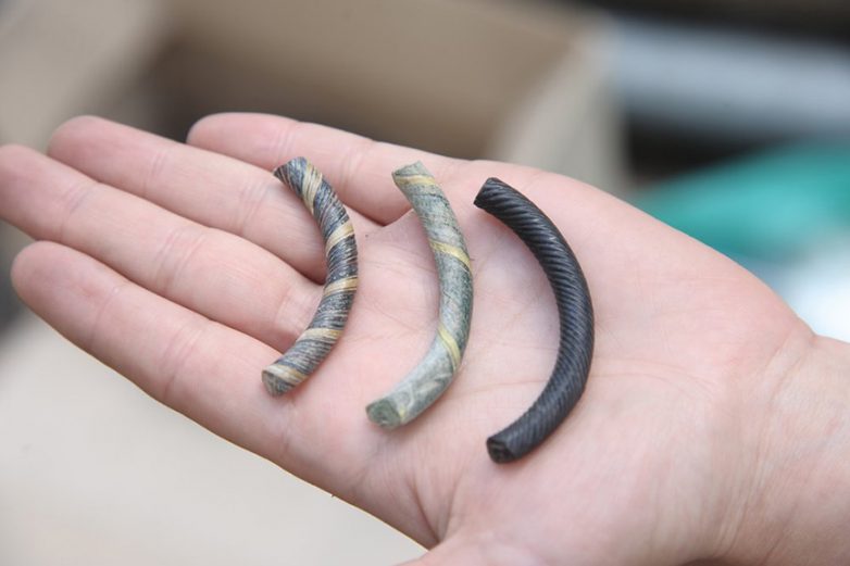 В глубине Биржевой площади археологи наткнулись на десять ультрамодных для Древней Руси браслетов из витых стеклянных бусин фиолетового и синего цвета. Эти украшения, изготовленные, скорее всего, в Киеве, были крайне дорогими.