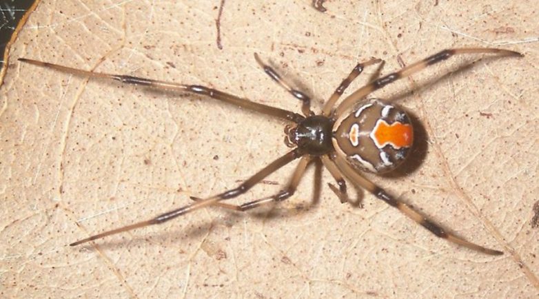 Окрас чем-то напоминает Черную вдову, но на деле красноспинный паук менее опасен. Его яд всего лишь выключает человека из жизни на 24 часа: бедняге суждено мучаться ужасной головной болью, высокой температурой и постоянной рвотой.