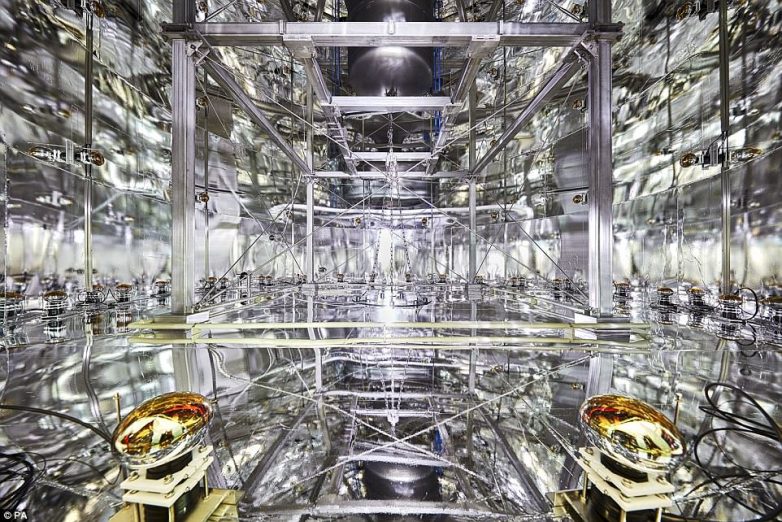Еще один золотой приз получило фото Энрико Сачетти. Детектор темной материи Xenon1T расположен на глубине 1400 метров под горой Гран Сассо в Италии. С его помощью проводятся эксперименты по обнаружению темной материи, которая предположительно составляет 27% Вселенной, а еще исследуется теория суперсимметрии.