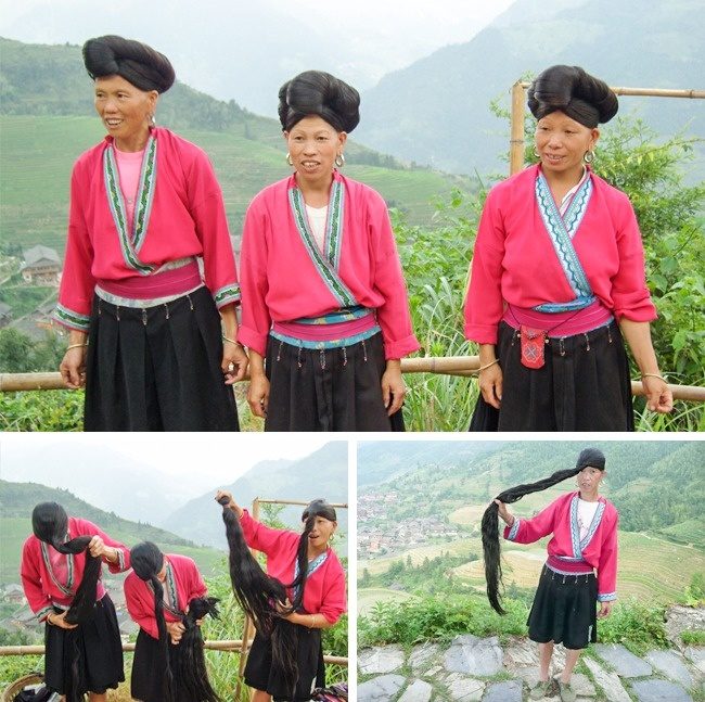 В китайской деревне Хуанло (Huangluo) живут женщины, которые славятся невероятно длинными волосами. Они стригутся лишь раз в жизни — во время обряда инициации в 16 лет.