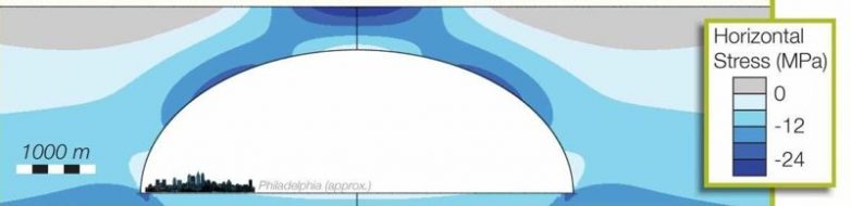 На Луне в 2009 году обнаружили глубокое отверстие, но недавние исследования американских и японских ученых показали, что что это отверстие рядом с кратером Мариус является лавовой трубкой, которых много на Земле, а их устройство хорошо известно. На картинке изображены размеры предполагаемой лавовой трубки в сравнении с городом Филадельфия. В такой трубке планируется в будущем размещать лунные базы, где астронавты и оборудование будут надежно защищены от радиации. А может быть, Носов прав? Луна окажется полой, а внутри живут капиталисты.