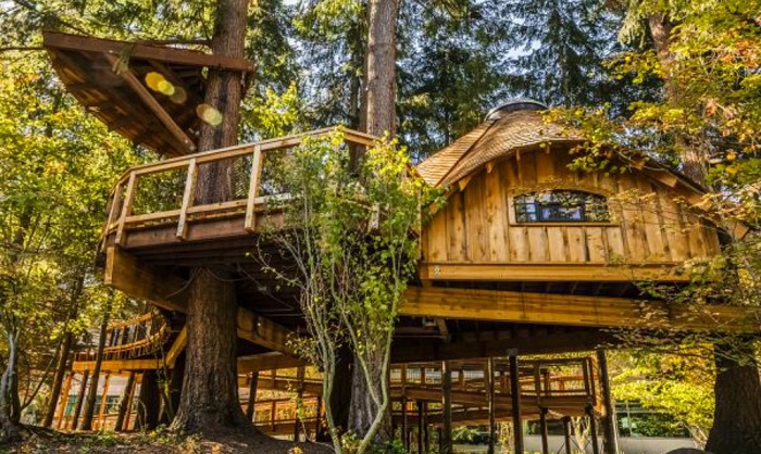 Команда сотрудников из Microsoft с удобством расположилась в новом офисе в Редмонде (штат Вашингтон, США). В общем-то офис представляет собой два деревянных дома на дереве на высоте 3,5 м. Они действительно построены вокруг массивной пихты.
