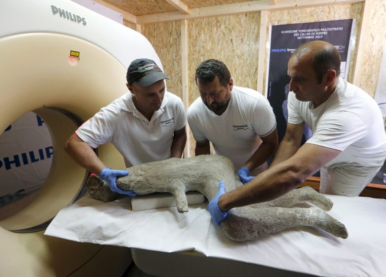 Экспертная команда археологов, радиологов, ортодонтов и антропологов начала использовать технологию компьютерной осевой томографии для изучения гипсовых слепков жертв знаменитых Помпеев. 16-слойный сканер обнаружил множество остатков скелетов и почти идеальные зубы. Давайте посмотрим на процесс работы ученых.