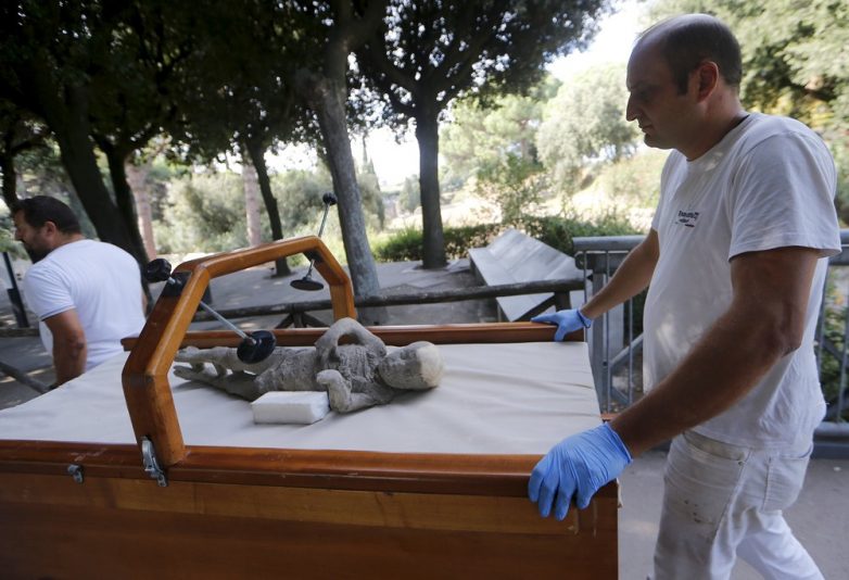 Реставратор пытается сопоставить различные фрагменты тел жертв извержения.