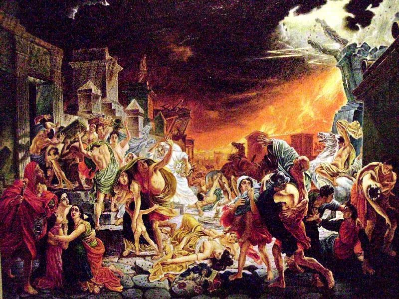 Помпеи, древнеримский город недалеко от Неаполя, был погребен под слоем вулканического пепла в результате извержения Везувия 24 августа 79 года. Извержение, предвестником которого было сильное землетрясение, длилось около суток. Оно привело к гибели трех городов: Помпеев, Геркуланума и Стабии.