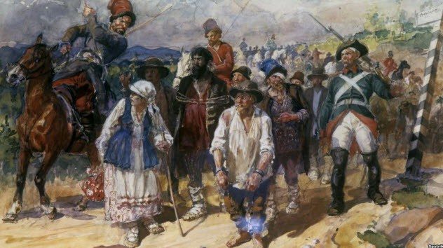Российская империя была построена на спинах крепостных, связанных конкретным местом и вынужденных работать на контролирующего территорию помещика. К XVII веку землевладельцам было разрешено покупать и продавать крепостных, что переводило последних в разряд самых настоящих рабов. Технически дворянам не было позволено убивать своих крестьян, но выбор наказания за проступок оставался на совести хозяина. Кончина холопа от травм при наказании не влекла никаких последствий. Крепостничество отменили только в 1861 году: этому моменту Россия имела население почти 63 млн — по меньшей мере 46 млн были крепостными.