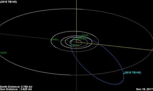 Странный космический гость, наделавший много шума осенью 2015 года, вернется к Земле в этом году. Хеллоуинский астероид 2015 TB145, как назвали его журналисты, был обнаружен гавайским телескопом Pan-STARRS всего за две недели до своего минимального сближения Землей, которое произошло в ночь на 31 октября 2015 года. Он пролетел на расстоянии 490 тыс. километров от Земли, то есть всего в 1,3 раза дальше орбиты Луны.