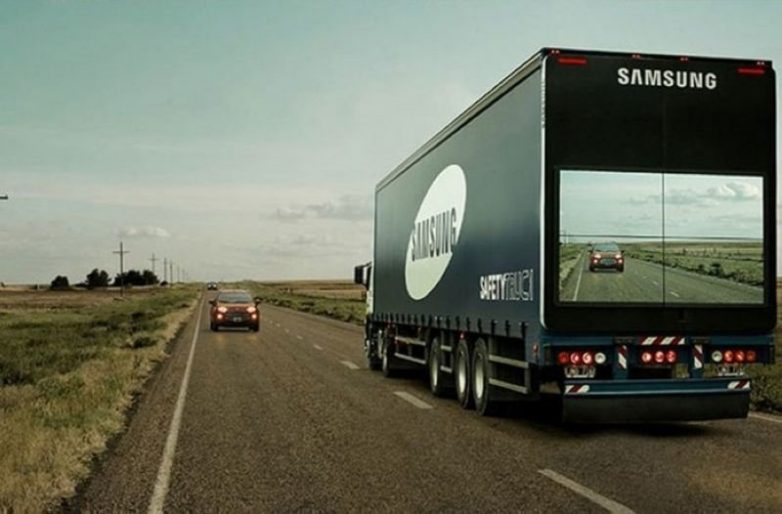Samsung производит не только электронику, но и танки (если быть точнее, гаубицу). Также компания разработала грузовики с установленным на задней части огромным монитором, который отображает то, что находится перед грузовиком (картинка подается с нескольких камер). Это позволяет другим водителям, которые едут за грузовиком, видеть, что находится перед ним. Подобная технология делает обгон намного более безопасным.