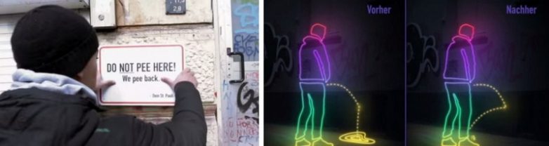 В борьбе за чистоту улиц немцы изобрели специальную гидрофобную краску, которая «возвращает» продукты жизнедеятельности на брюки и ботинки любителей справлять малую нужду на стены. Такая краска уже с успехом используется в одном из районов Гамбурга.