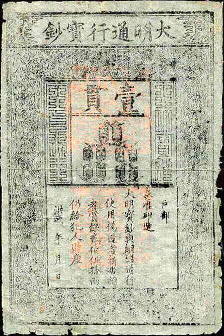 Банкнота, которую вы видите выше – самая старая из сохранившихся. Она была выпущена около 1380 года.