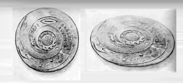 Источник: www.gizemligercekler.com Тарелка Лолладоффа — найденное в Непале каменное блюдо, которому 12 тысяч лет. На нем изображен летающий объект в виде диска и существо, похожее на пришельца. Тарелка принадлежала племени дропа, которое, по легенде, произошло от солнечных божеств.