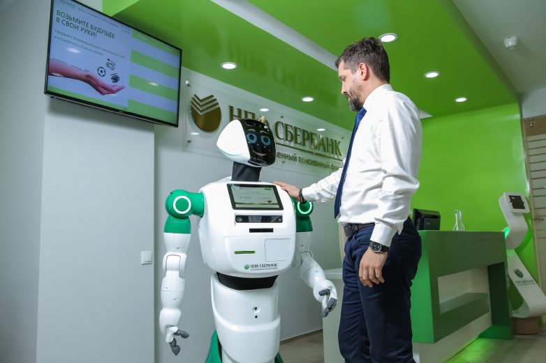 В московских отделениях Сбербанка работают вот такие роботы от компании Promobot. Они собирают отзывы клиентов о работе банка и управляют электронной очередью.