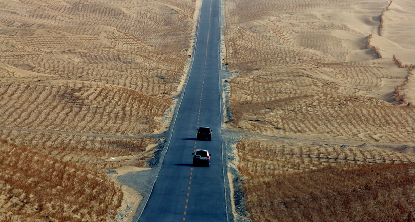 Вдоль пустыни китайцы построили платную дорогу Хоргос-Урумчи. Ровная как стол и прямая как тетива лука. Такла-Макан не такая уж и пустынная.